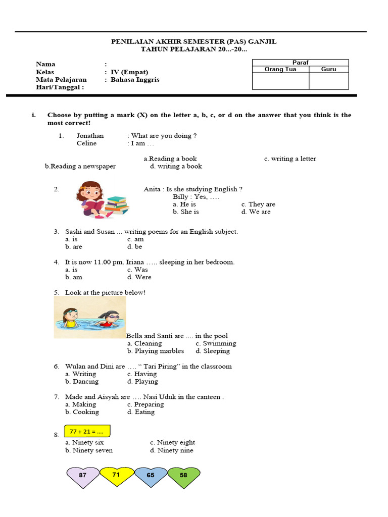 Contoh Soal SAS Bahasa Inggris Kelas 4 Semester 1 dan Kunci Jawaban