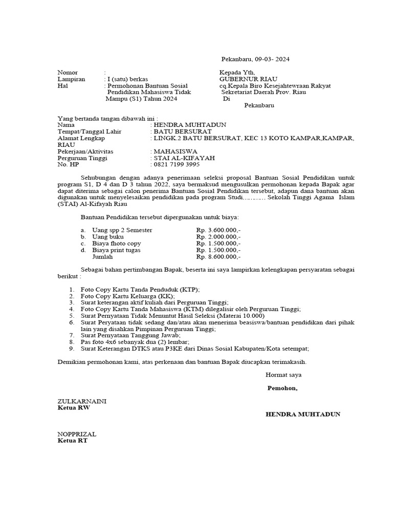 - Alasan pengajuan harus jelas dan didukung data valid.